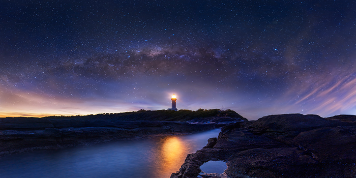 Norah Head Lighthouse (panorama, evening transition)