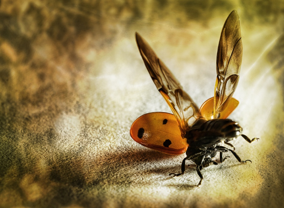 I used Nikon's Creative Lighting system and a single flash mounted on a small stand, positioned on the right side of the table. I took around 50 shots while the ladybug walked across the paper, and while it stood still. When it tried to leave the table, I picked it up and put it back on the paper. That’s when the ladybug fell on its back. As it tried to stand up, it spread its wings. I only had time to take three shots because it was so quick getting back onto its feet.